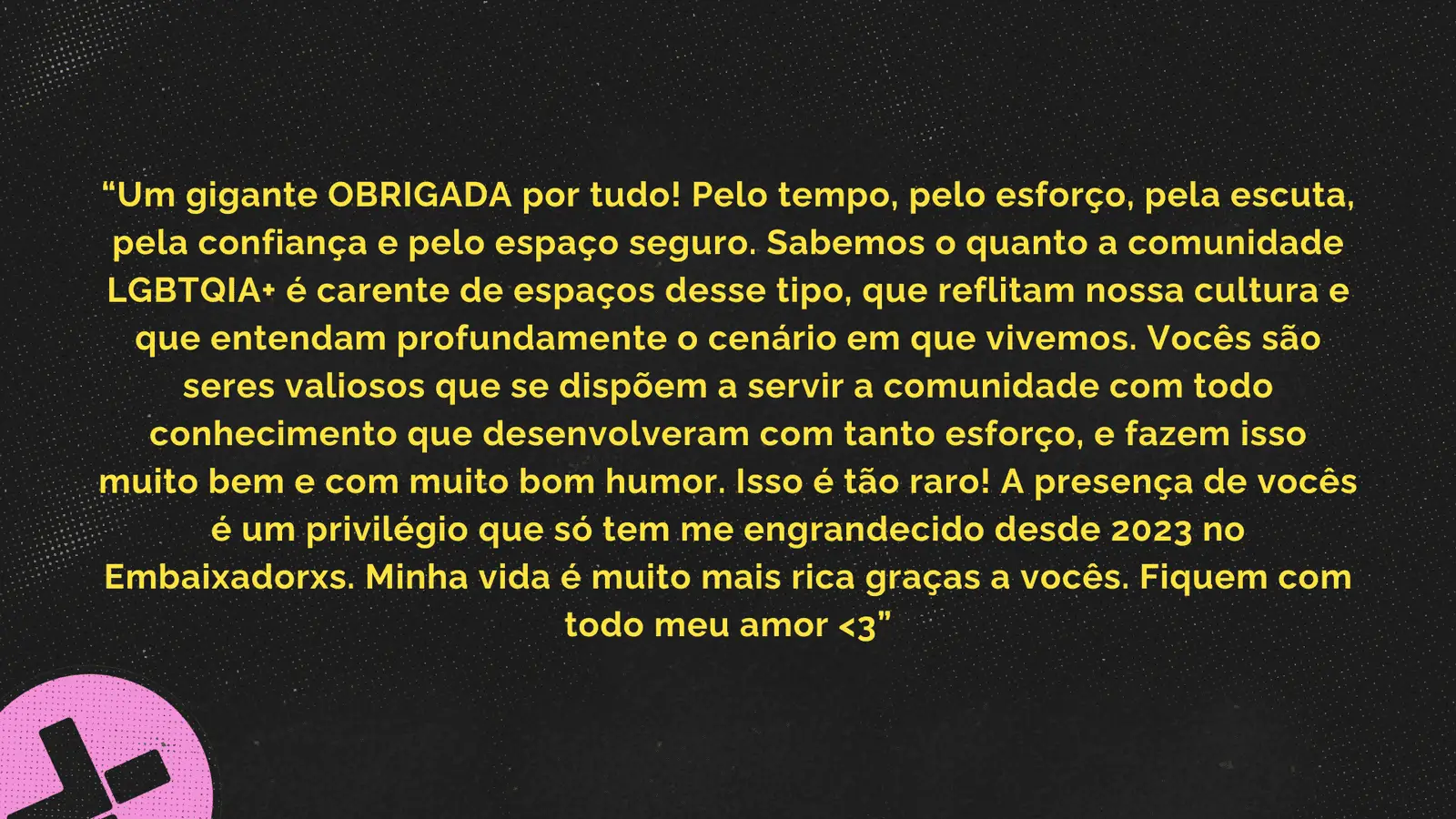 As palavras que recebemos da nossa comunidade demonstram o quanto crescemos juntos, e principalmente, o quanto conseguimos construir um espaço seguro:
